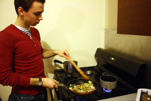 My friend and former housemate came to visit last week, which was a perfect excuse to cook a LOT, since he was one of my best cooking buddies when we lived together. He’s just finishing his degree in Asian history and, it goes without saying, is super interested in Asian culture. We took a trip to Chinatown and came back with a bunch of fresh produce and some other goodies that resulted in a couple of really awesome Asian-inspired meals. Banjo player/singer/songwriter Abigail Washburn plays one of my favorite types of music (folk/Americana), but she’s been heavily influenced by Chinese culture, thanks to time she spent living and working there. So I wanted one of our dishes to be inspired by her self-titled record with The Sparrow Quartet (banjo master — and now Washburn’s husband — Bela Fleck, cellist Ben Sollee, and fiddler Casey Driessen), which mixes Americana and Chinese folk music.