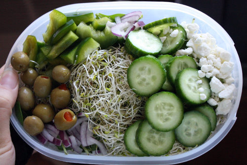 Today’s lunch! With balsamic vinaigrette dressing (recipe for that and other salad dressings here.