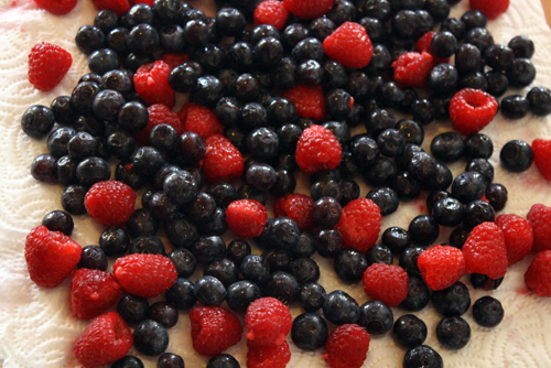 2 c berries (we used 1 c each of blueberries and raspberries)