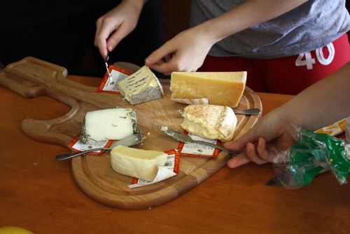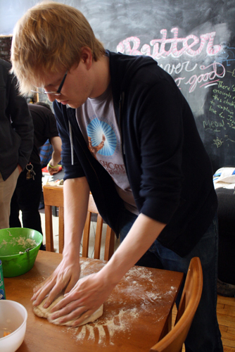 There’s nothing I love more than waking up after a big night out and cooking up a huge brunch with the people I was out with. It was the morning after the final LCD Soundsystem show at Madison Square Garden, and my friends and I decided to spend the morning/afternoon cooking and eating entirely too much food. Tony and Paul made a huge batch of biscuits and sausage gravy, we ate a bunch of cheese Tony bought at Murray’s Cheese Shop, and I took on the most amazing, decadent breakfast dish I have ever made. I never order this stuff when I’m at a restaurant — I always stick to the egg dishes — but my roomie Petra sparked the mascarpone idea and I went with it. I should also give props to James, who had the brilliant idea to add champagne to the egg mixture, which makes it a bit lighter and fluffier than normal French toast. This stuff was so amazing that Missy told me it ruined French toast for her — because now any time she eats it, she will only be thinking of this. (Photos: Thank you Joe and James, although I’m not sure who took what!)