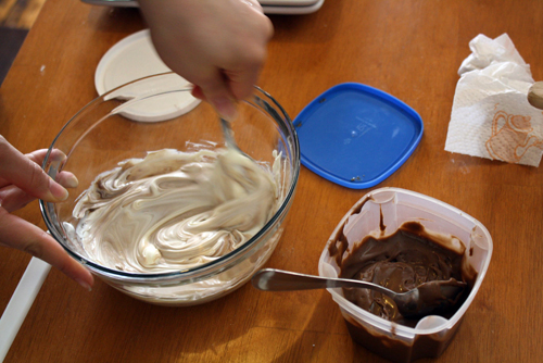 • Mix mascarpone with melted chocolate