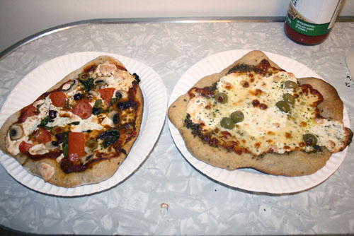 Matt: Pesto + olive oil, mozz, kalamata and green olives
