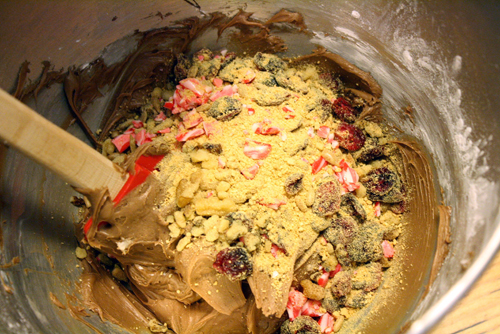 Chocolate cream cheese fudge with everything but the kitchen sink mixed in (recipe here)