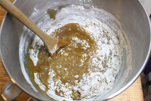 • In the bowl of a stand mixer (I don’t see why this wouldn’t with a handheld electric mixer, but I have not done it this way so I can’t vouch for it!), combine all ingredients except the butter, and mix on low until combined.