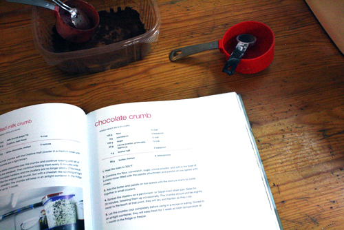 From Christina Tosi’s Momofuku Milk Bar. These are kind of like clusters of Oreo cookie crumbs. You’ll have leftovers; just try to keep yourself from snacking on them…