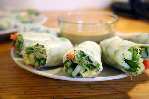 Vietnamese-style spring rolls with peanut sauce (recipe here)